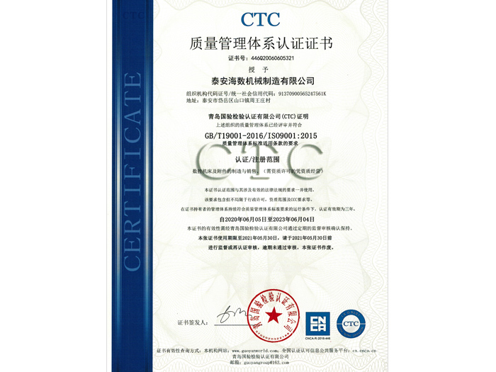 泰安海數(shù)機械制造有限公司(原泰安市海特機器制造有限責任公司)專業(yè)生產(chǎn)機電智能產(chǎn)品,是集開發(fā)、制造、銷售于一體的綜合性企業(yè)。公司下屬兩個事業(yè)部:一個是數(shù)控機床事業(yè)部,主導產(chǎn)品是“海數(shù)”牌數(shù)控車床、車削中心、加工中心等;一個是試驗設(shè)備事業(yè)部,主導產(chǎn)品是“泰山海特”牌高壓共軌試驗臺和噴油泵、噴油器試驗臺等。公司成立于2001年3月,2010年11月企業(yè)轉(zhuǎn)型后重新注冊。已通過歐洲CE認證。擁有一批年輕有為從事智能設(shè)備設(shè)計與制造、數(shù)控軟件研究與開發(fā)的專業(yè)技術(shù)人才。采用先進的CAD計算機輔助設(shè)計和CAM計算機輔助制造,實現(xiàn)了PDM圖檔管理;產(chǎn)品自主創(chuàng)新,設(shè)備數(shù)控化,管理信息化,已成為技術(shù)創(chuàng)新型企業(yè)。